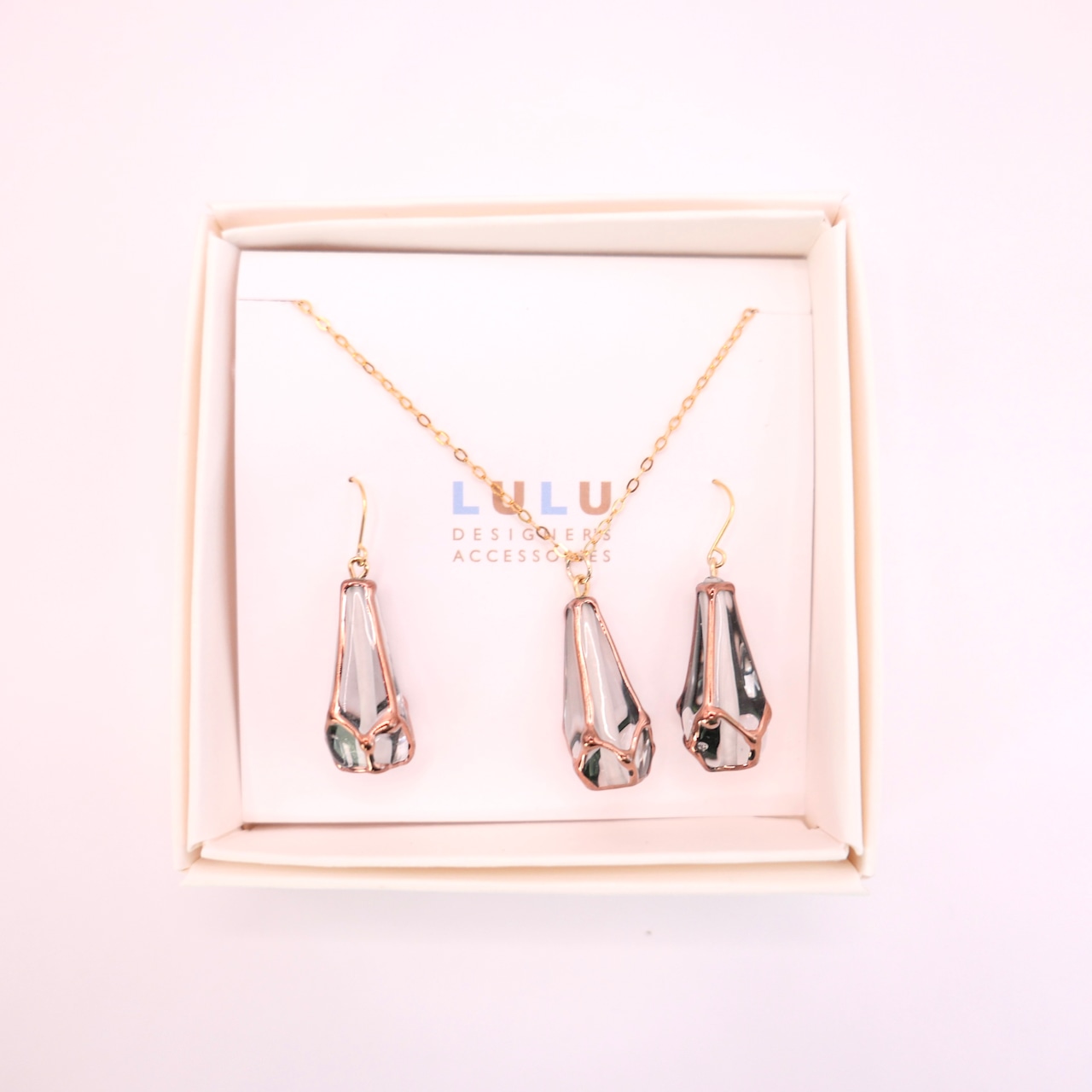 チェコの職人さんが手作りしたガラスを使用したピアスとネックレスのセットです。