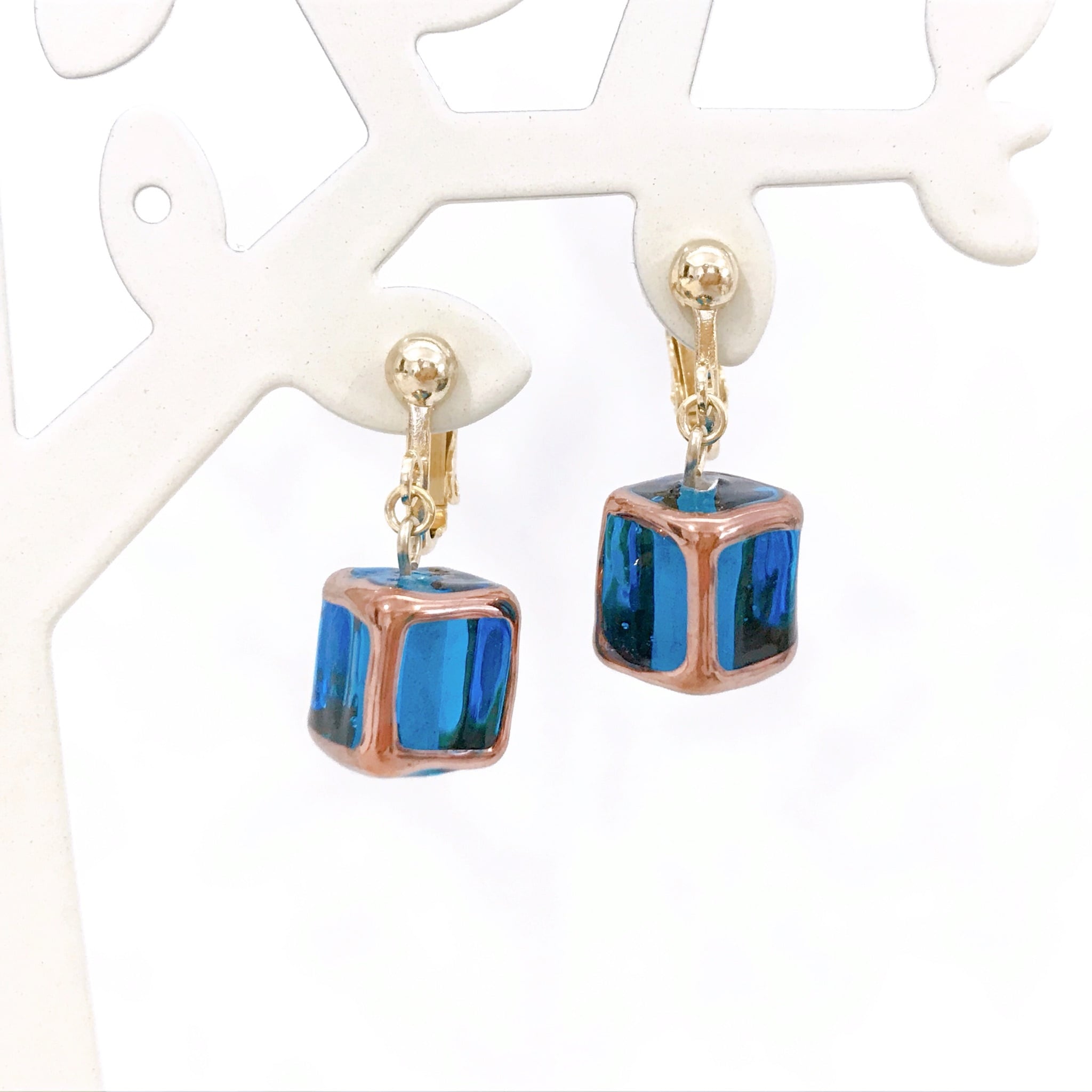 チェコの職人さんが手作りしたガラスを使用したイヤリングです。ゴールドの部分はガラスに焼き付けて作られているため、剥がれません。