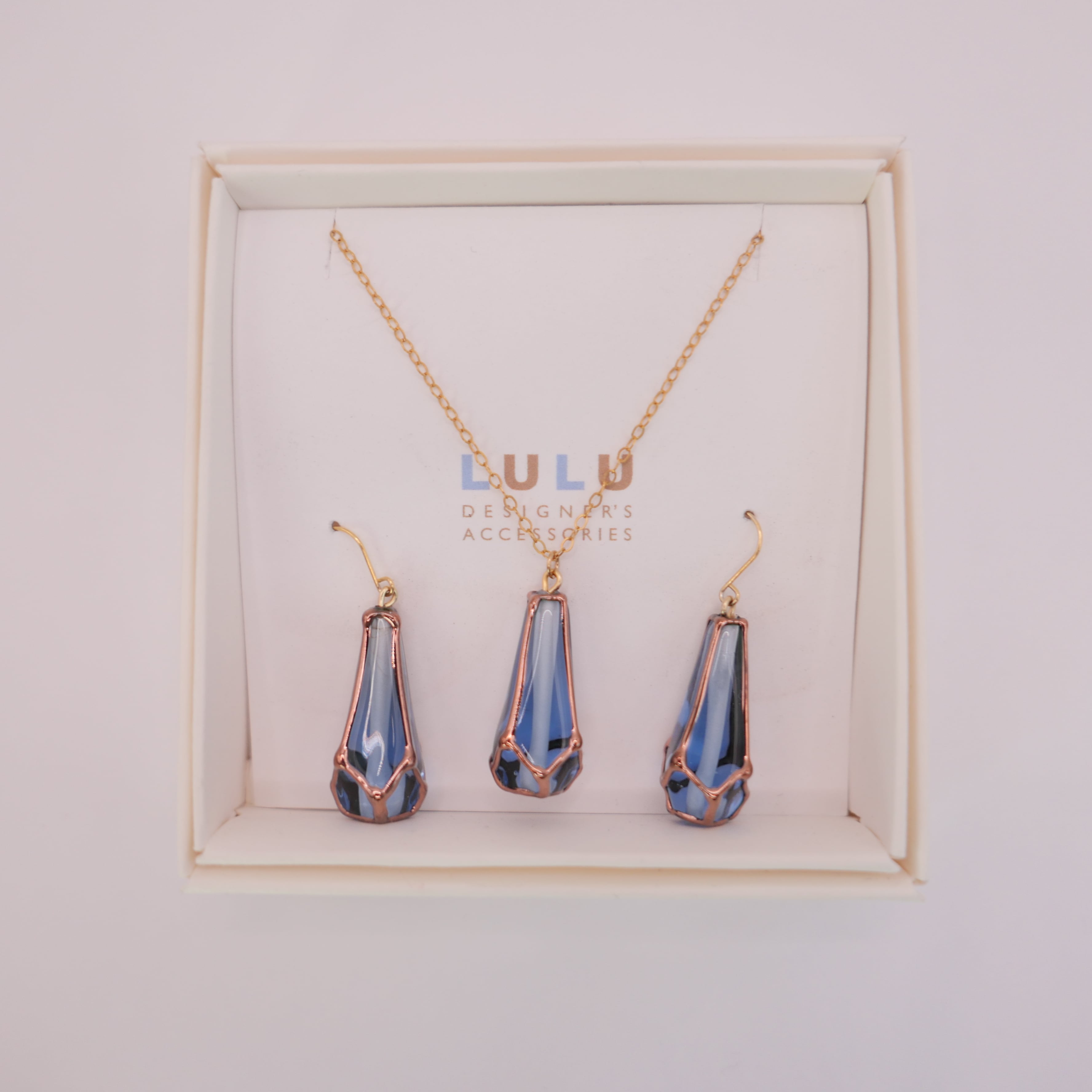 チェコガラスピアス&ネックレス セット ロイヤルブルー