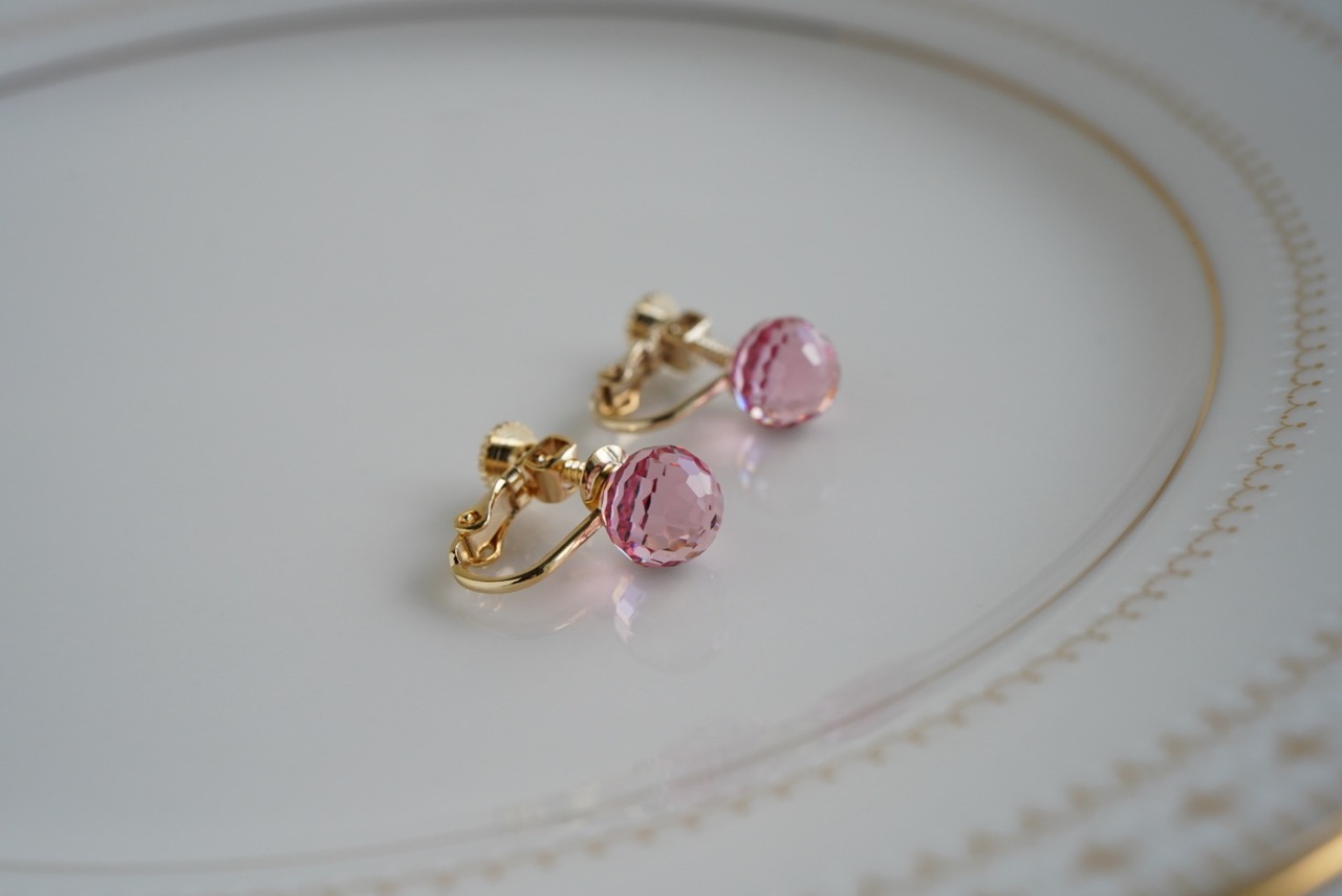 スワロフスキー ラウンド イヤリング ピンク